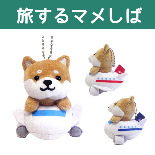 旅するマメしばシリーズの飛行機のぬいぐるみマスコットです。
