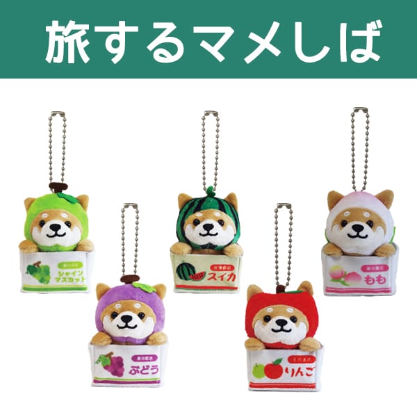 旅するマメしば ぬいぐるみボールチェーン 段ボール シャインマスカット・段ボール ぶどう・段ボール スイカ・段ボール りんご、段ボール もも