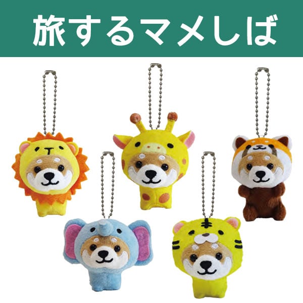 旅するマメしば【サファリ】 ぬいぐるみボールチェーン ライオン・ゾウ・キリン・トラ・レッサーパンダ