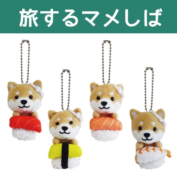 旅するマメしば ぬいぐるみボールチェーン 寿司(マグロ、タマゴ、サーモン、エビ)