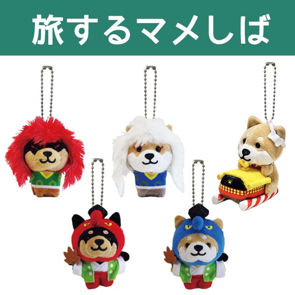 旅するマメしば ぬいぐるみボールチェーン 歌舞伎(赤、白)・天狗(赤、青)・みこし