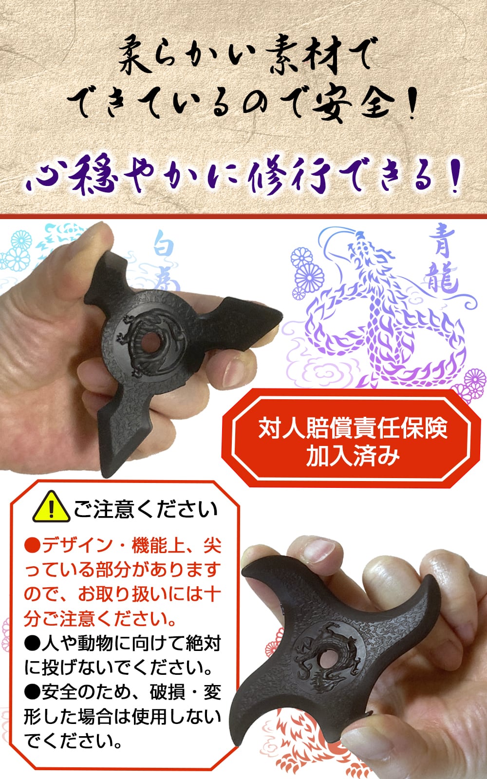 四神のレリーフ入りの手裏剣8枚のセットです。