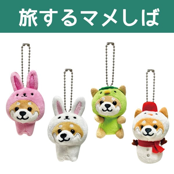 旅するマメしば ぬいぐるみボールチェーン うさぎ(ピンク)・うさぎ(白)・カッパ・雪だるま
