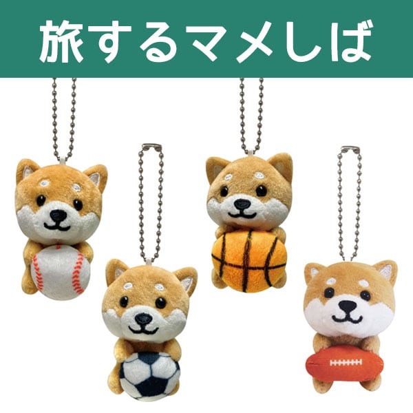 旅するマメしば【スポーツ】 ぬいぐるみボールチェーン 野球・サッカー・バスケ・ラグビー