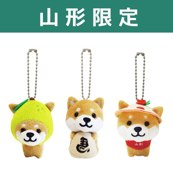 旅するマメしば【山形】 ぬいぐるみボールチェーン ラフランス・将棋駒・花笠