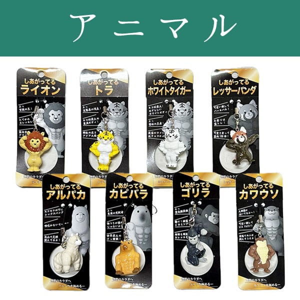 ライオン、トラ、ホワイトタイガー、レッサーパンダ、アルパカ、カピバラ、ゴリラ、カワウソの8種類あります。